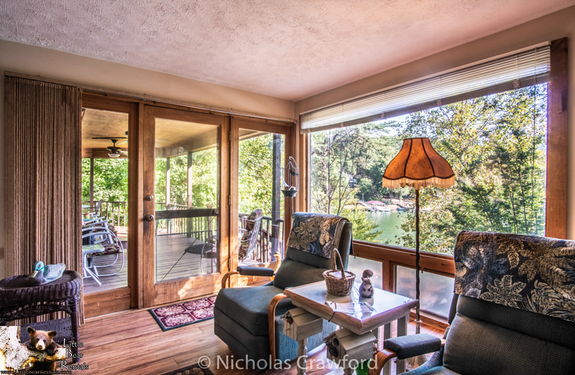 But let’s face it: If you decide this is your mountain destination, then you're coming here for the water. Imagine sitting out on the covered back porch reading your favorite book while enjoying the cool breezes and sounds of majestic Lake Chatuge. Here on the covered porch, you can enjoy cooking on the gas grill and dining outdoors while watching the sun set over the distant mountains and gorgeous water.