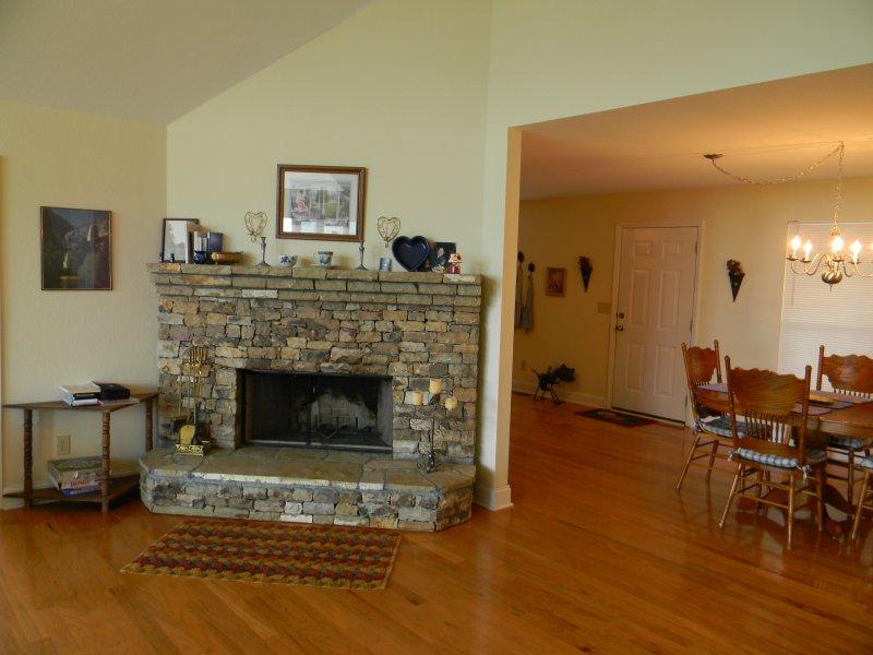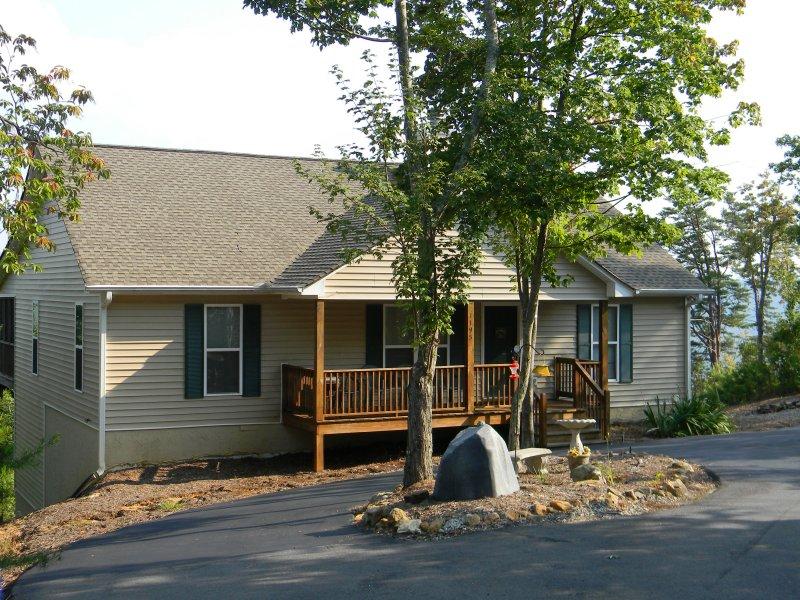 Mountain-top retreat with spectacular views. This 3-bedroom/2-bath home offers the perfect family getaway. The living room features a wood-burning fireplace and a flat-screen TV. There is a king bed in the master bedroom and a jetted tub in the master bath. Wake up to the beautiful scenery around you.